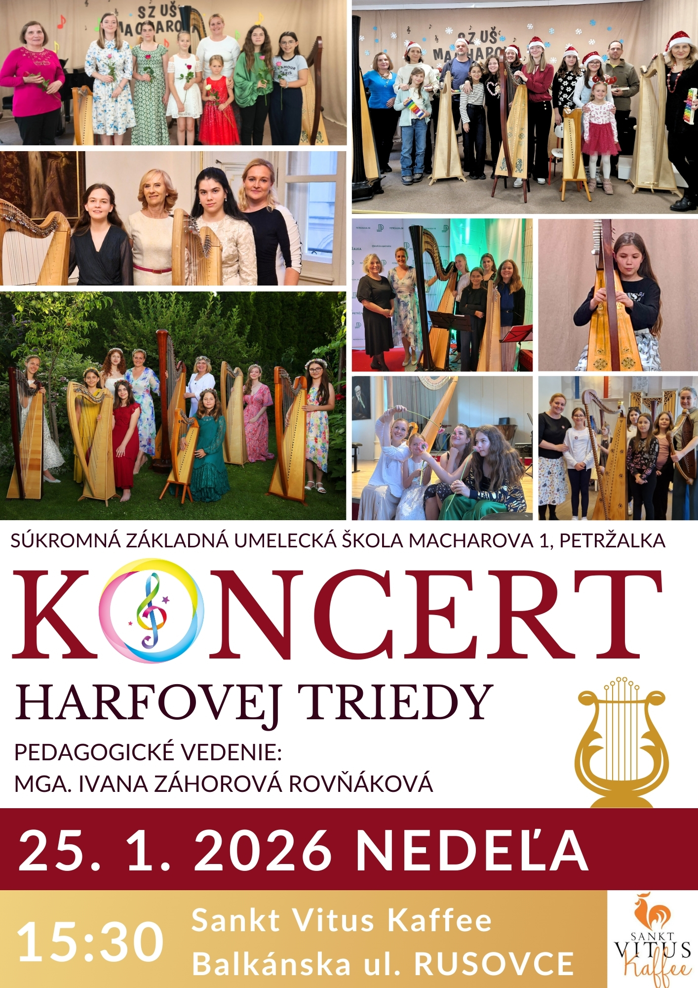 - hru na harfe – koncertnej a írskej (háčikovej)